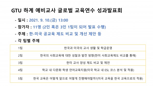2021 하계 예비교사 글로벌 교육연수 성과발표회 자료