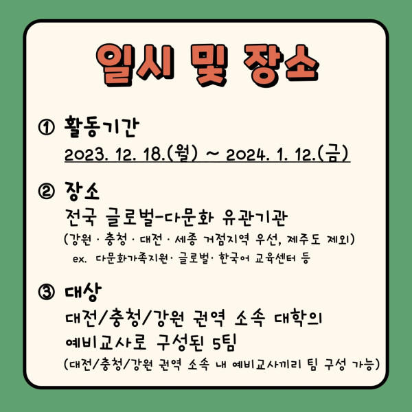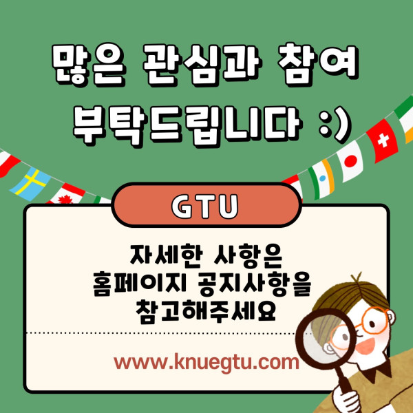 한국교원대학교 GTU 사업단에서는 글로벌-다문화 기관 자율 탐방 연수 참가자를 모집합니다.