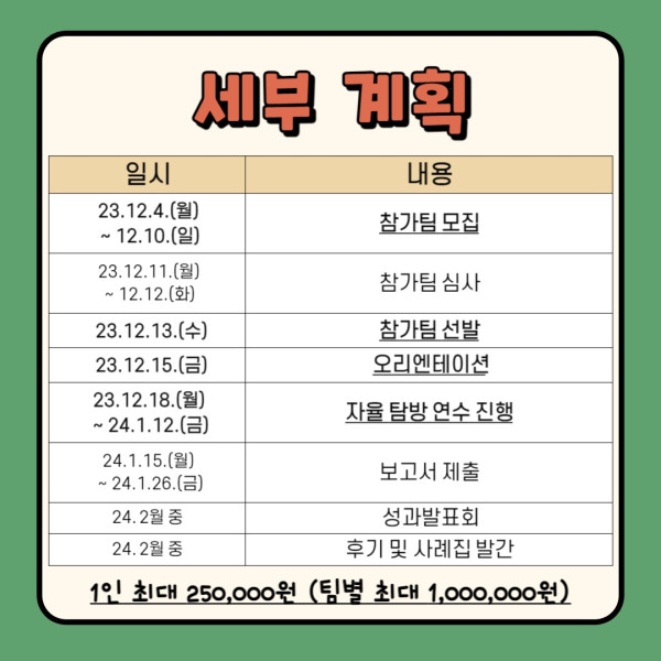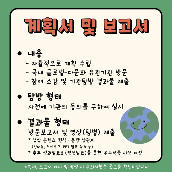 계획서 서식을 참고하여 계획서를 작성한 후 chlwogml1234@knue.ac.kr로  12월 10일(일)까지 제출 부탁드립니다.