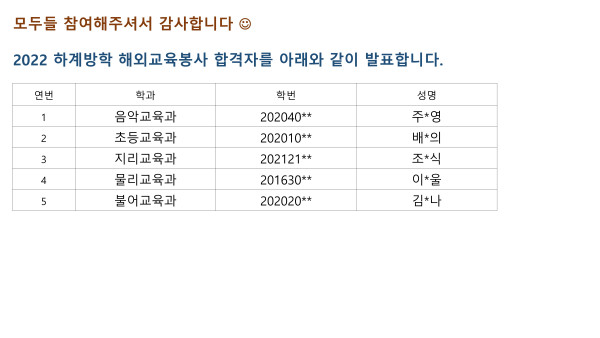 하계교육봉사에 지원해주셔서 감사드립니다.