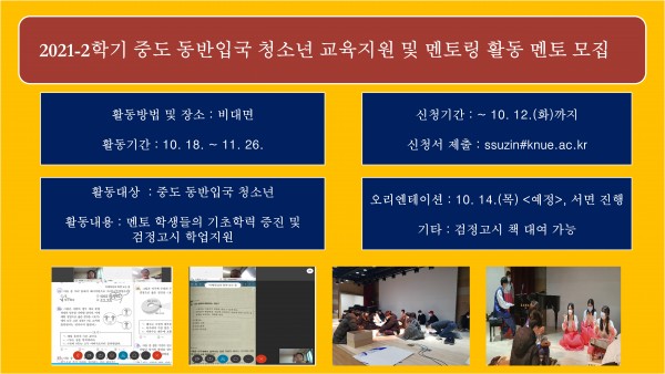 2021-2학기 중도동반입국청소년 멘토링 활동 참가자 모집