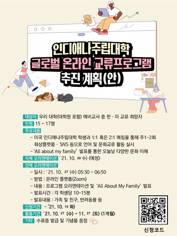2021학년도 인디애나주립대학 글로벌 온라인 교류프로그램 추가 모집(~10.19.)