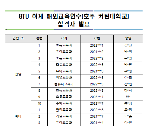2024학년도 하계 해외교육연수(호주 커틴대학교) 합격자 발표 안내드립니다.