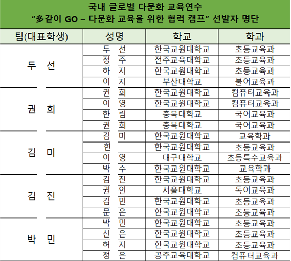 국내 글로벌 다문화 교육연수 “多같이 GO – 다문화 교육을 위한 협력 캠프” 선발팀 안내