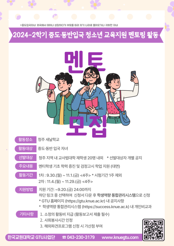 2024-2학기 중도·동반입국 청소년 교육지원 및 멘토링 활동 참가자 모집