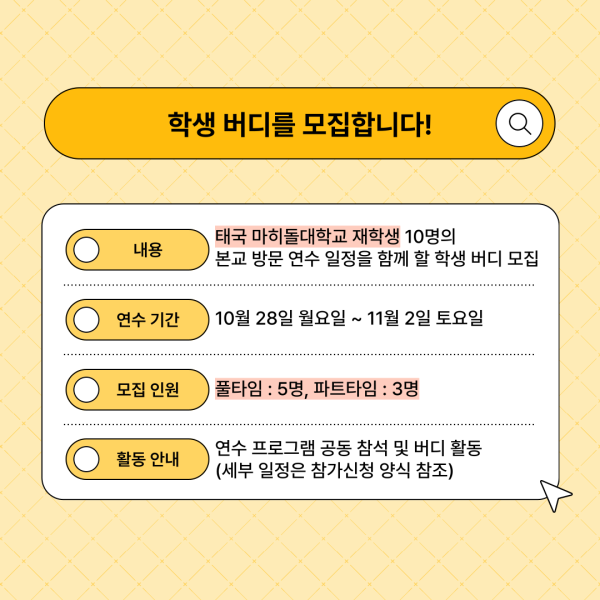 2024 태국 마히돌대학교 본교 방문연수에 따른 학생버디 모집