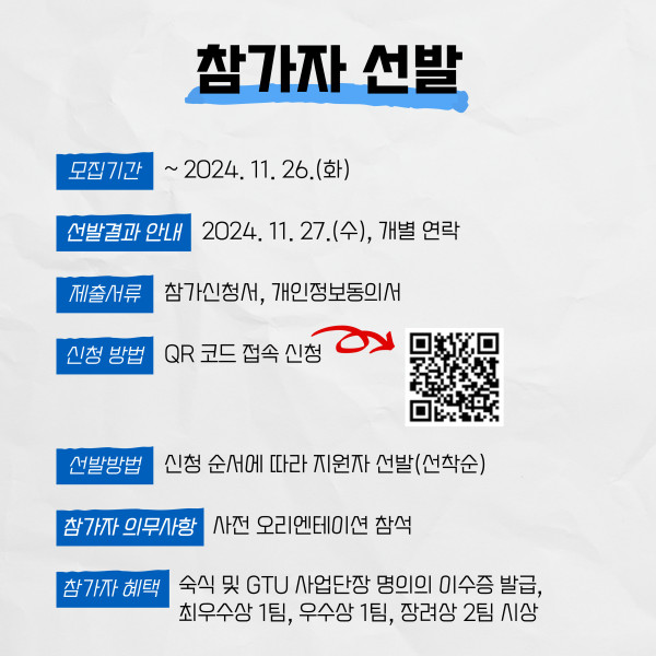 - (접수) 공고일 ~ 마감 시까지(20명 모집시 마감)  ※[붙임1] QR코드를 통한 참가신청