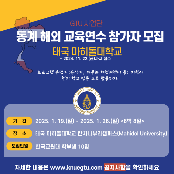 2024학년도 동계 해외교육연수(태국 마히돌대학교) 참가자 모집