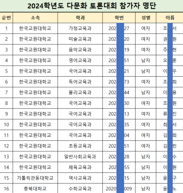 2024학년도 다문화 토론대회 선발자를 알려드립니다.