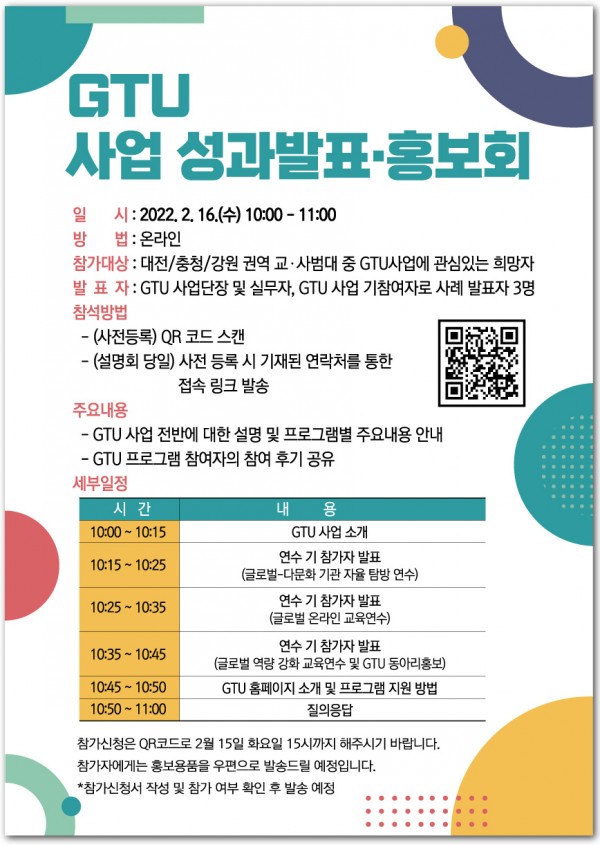 GTU사업 성과발표 및 홍보회 개최(참가자에게 경품)