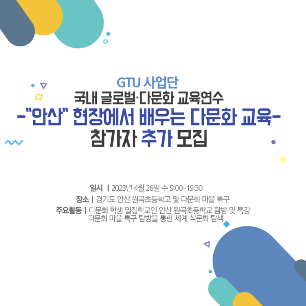 [추가모집]2023-1학기 국내 글로벌·다문화 교육연수(안산:현장에서 배우는 다문화교육) 참가자 모집