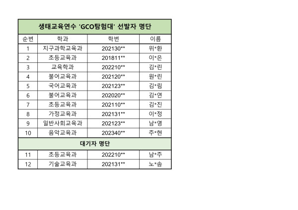 생태교육연수 'GCO 탐험대' 선발자 안내