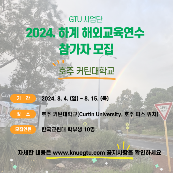 2024 GTU 하계 해외교육연수(호주 커틴대학교) 참가자 모집합니다.