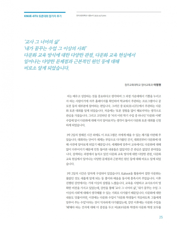 2020년 KNUE-GTU 토론대회 참가자 후기